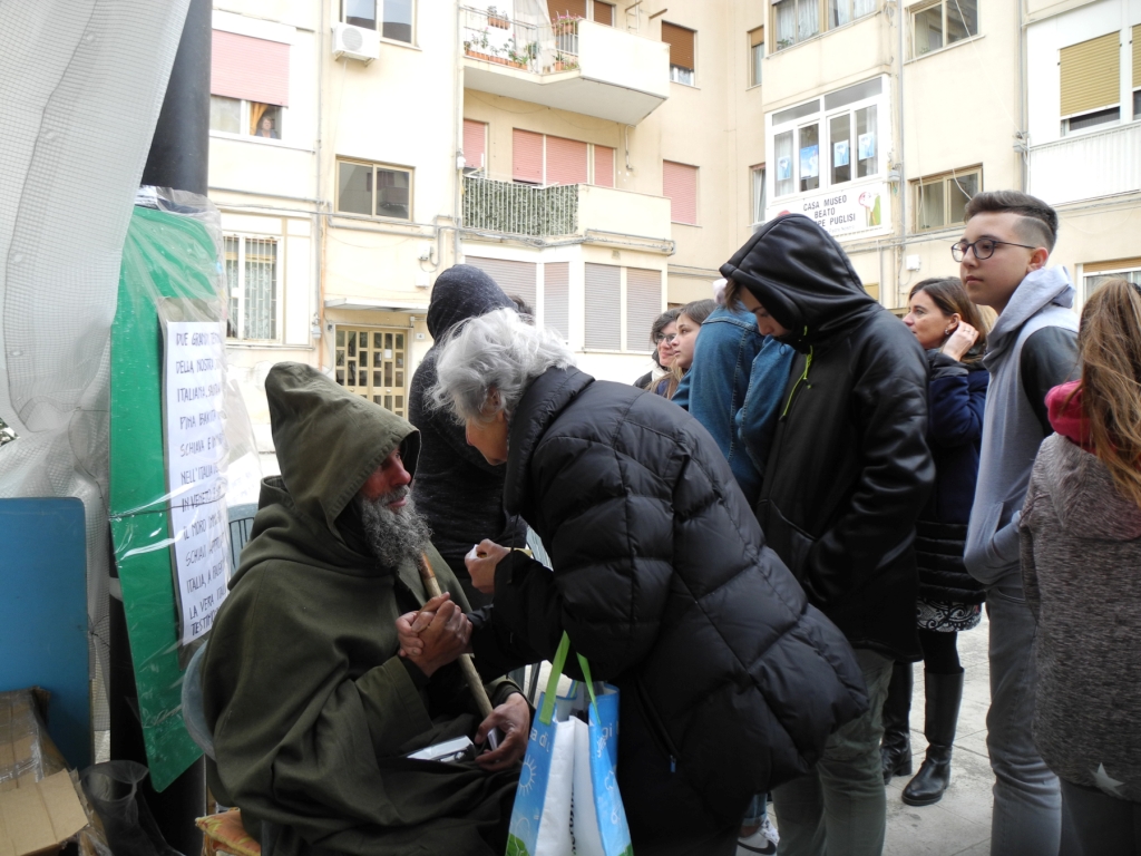 Fratel Biagio Conte è una figura conosciutissima a Palermo, in Sicilia e nel resto del mondo, sia laico che cattolico. L’11 luglio, stremato, ha sospeso un digiuno molto lungo fatto soprattutto per richiamare le famiglie al loro impegno primario di dedicare tempo ai figli. Il 20 luglio ho potuto stare a lungo con lui, la sua comunità maschile e femminile, e alcuni poveri presso la sede di Missione Speranza e Carità. Nell’ambito dell’incontro ha rilasciato la lunga intervista al blog che riporto qui sotto (foto di Giacomo Palermo)