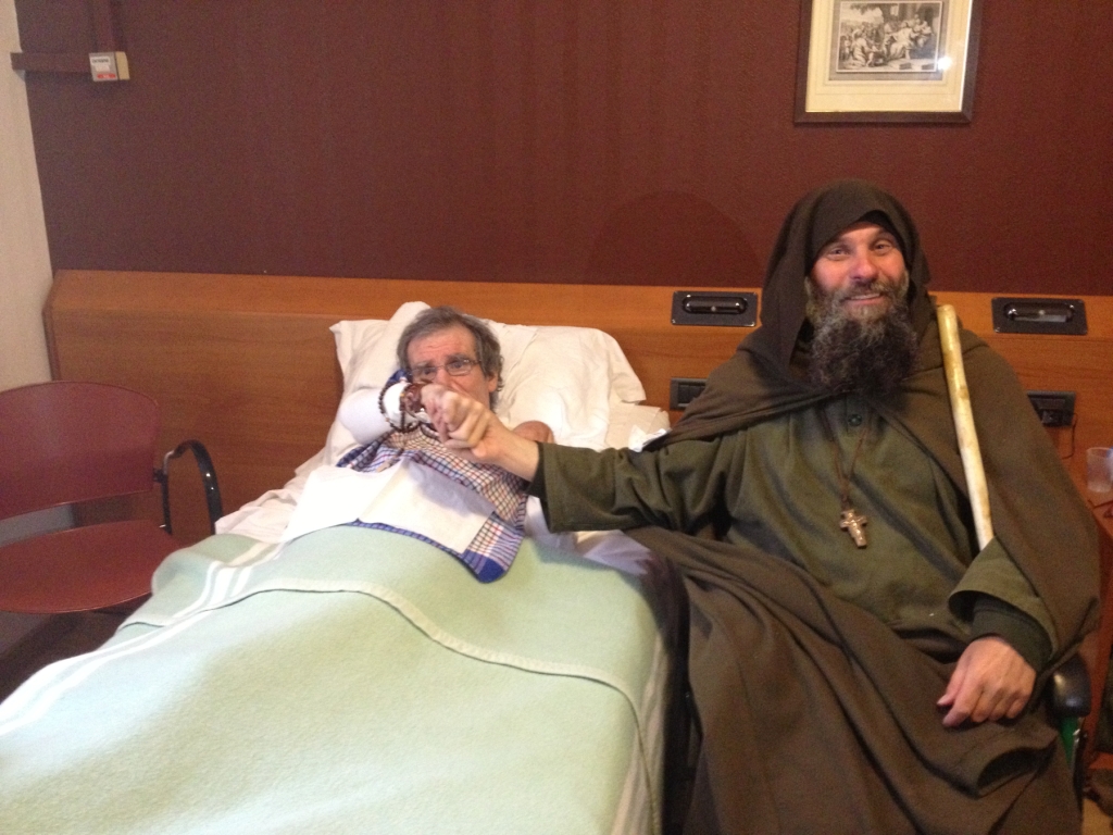 E da dove mi venne questa forza? Non dal mondo, dalla società dagli amici, dalle comitive, ma guardando il Crocefisso che i miei avevano messo sopra la porta della mia stanzetta fin da quando ero piccolo. Avevo 26 anni. Ero in piena gioventù. Mio padre mi voleva nell’azienda ero l’unico figlio maschio. Ma io ho ridato tutto. Ho lasciato tutto. sono andato via, nelle montagne e non ho dato più notizie. Ho vissuto da eremita. Nel silenzio ho ritrovato me stesso. La pace. La vera pace la vera libertà. Non quella che ci rende schiavi. Dopo un anno di eremitaggio, feci il primo pellegrinaggio. Dall’interno della Sicilia arrivai fino ad Assisi. Perché la figura di Francesco mi affascina. Mia madre me ne parlava. E così arrivo a piedi fino ad Assisi. Quando arrivai lì, sulle prime pensavo di andare in Africa o in India, ma il buon Dio mi disse: l’Africa è anche qui, è qui. Bisogna cominciare dalla tua città. Mi ha riportato dove non volevo più ritornare. Io di Palermo non ne volevo più sapere.