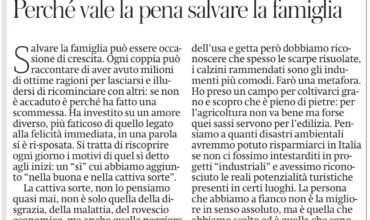 Salvare la famiglia può essere un’occasione di crescita. Ogni coppia…